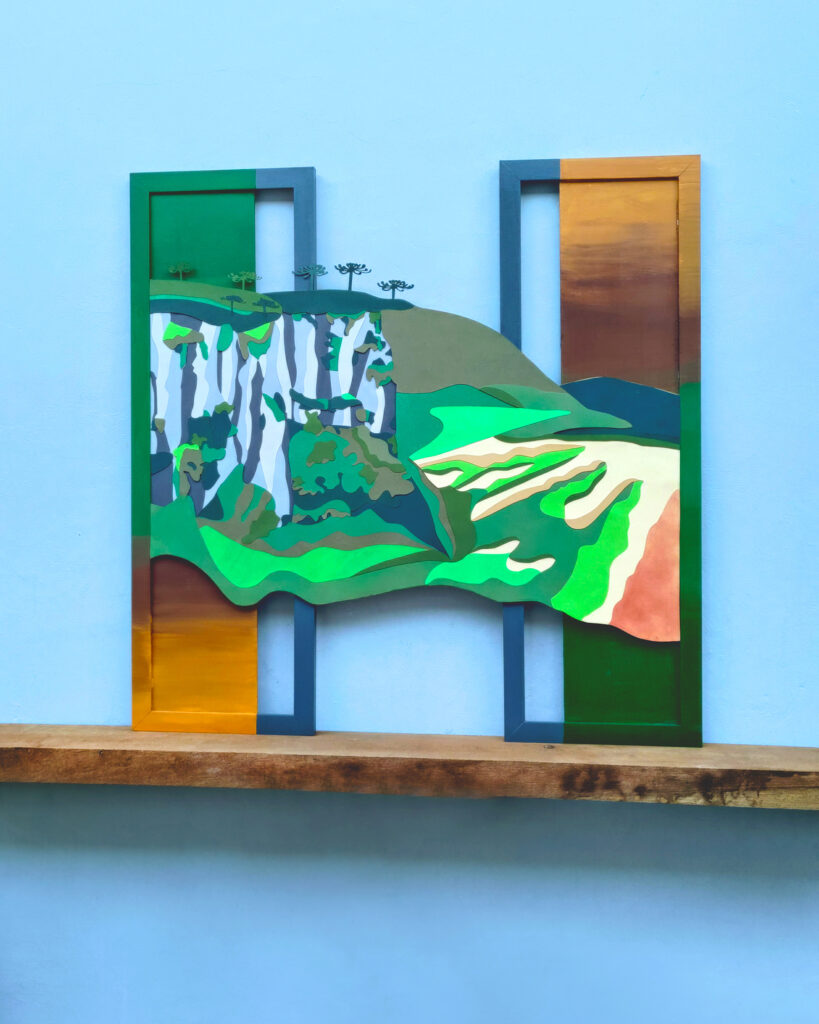 Busquei meu repertório colecionável de imagens de viagens para o campo onde tenho as recordações de piá na casa do Nonno, no interior do RS. Correndo entre as plantações, subindo os morros, brincando com a terra. Juntei elas a outra extraordinária paisagem que visitei: os Cânions em Cambará do Sul.