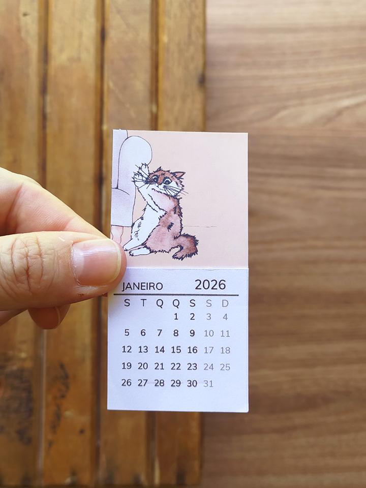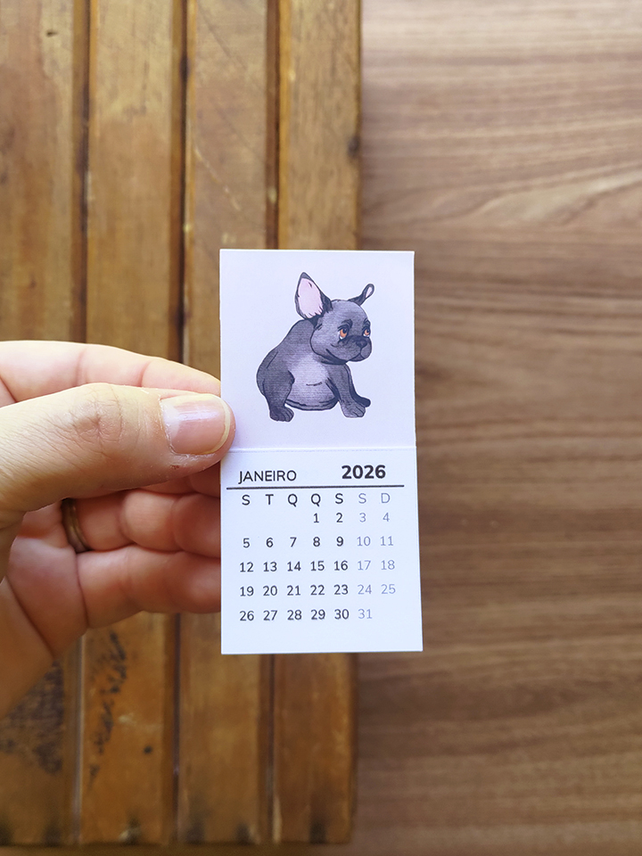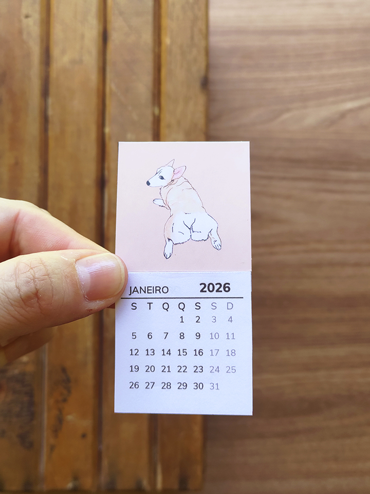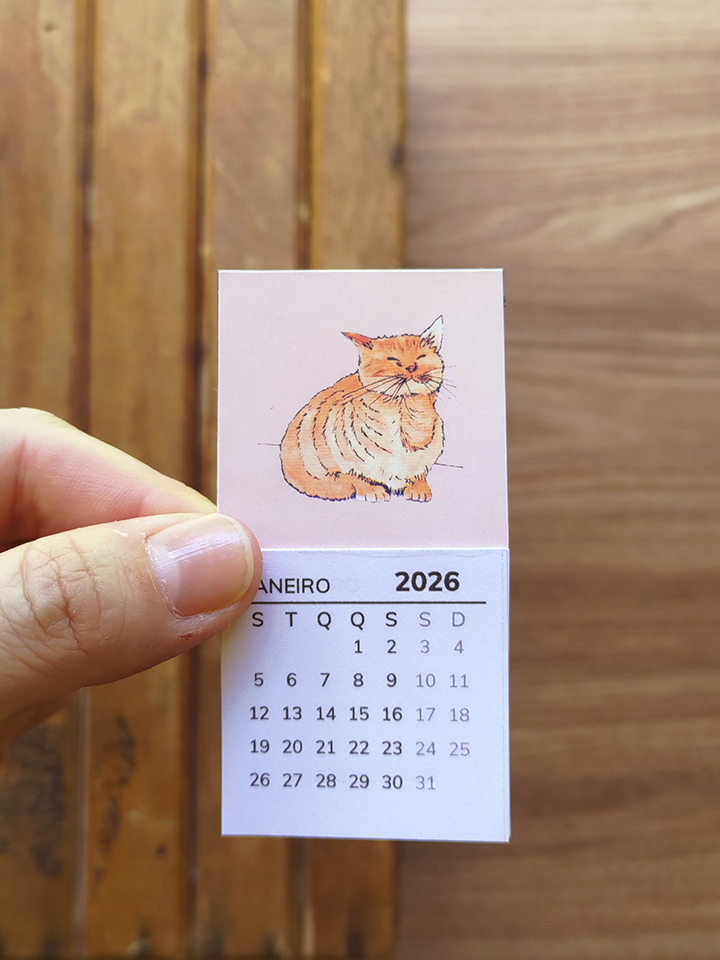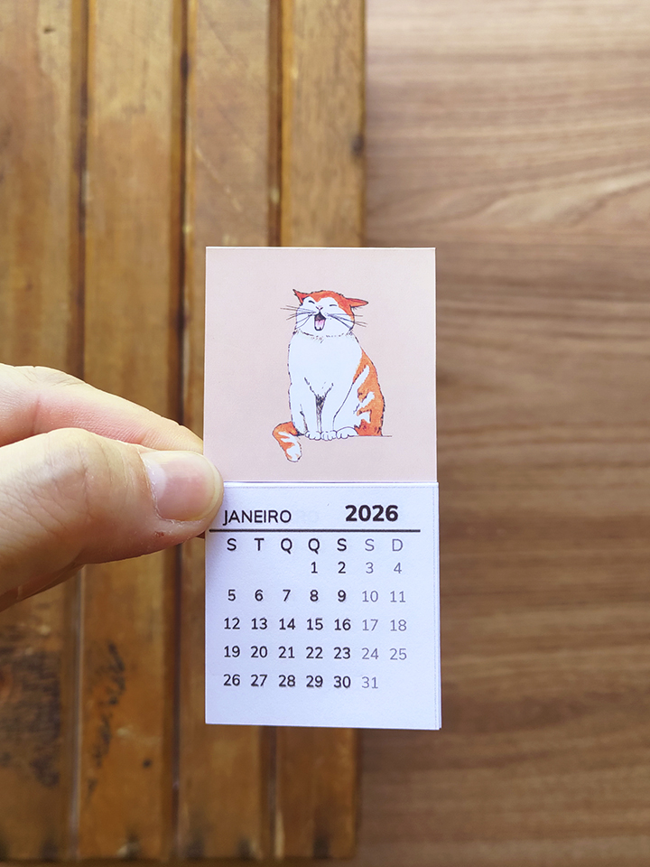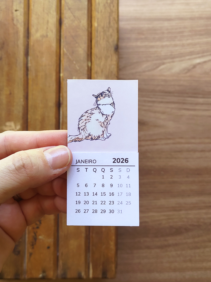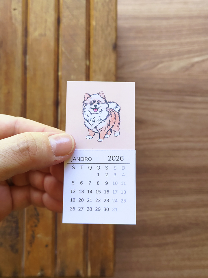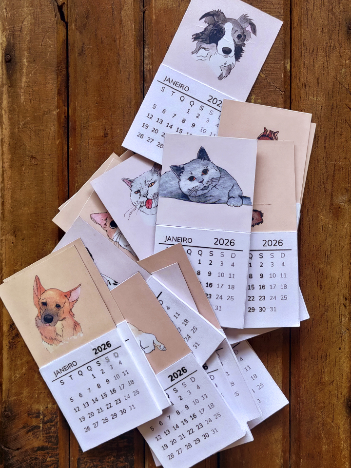 O calendário artesanal Petlovers ajuda a visualizar o tempo com mais calma. Com ilustrações autorais de gatos e cachorros, ele acompanha a rotina sem ocupar espaço em excesso.