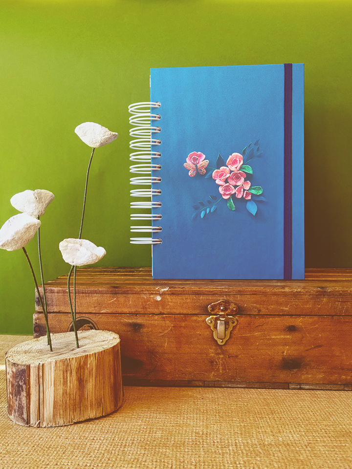 A Agenda Diário Uma borboleta pousou no meu jardim é feito à mão no Estúdio. Nem preciso dizer: como toda criação do Criar Ideia, é uma peça de artesanato feita a mão.